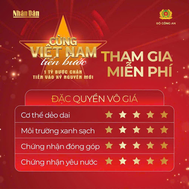 Sự kiện “Cùng Việt Nam tiến bước”, với thông điệp chủ đạo “1 tỷ bước chân tiến vào kỷ nguyên mới” là một hoạt động thiết thực thể hiện lòng yêu nước, giảm khí thải carbon và hướng tới mục tiêu Net Zero của quốc gia.