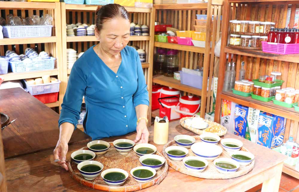 Bà Nguyễn Thị Bích Vân, điểm du lịch cộng đồng Cồn Chim, xã Hòa Minh, tỉnh Vĩnh Long (địa bàn huyện Châu Thành, tỉnh Trà Vinh trước sáp nhập) chuẩn bị món ăn dân dã phục vụ du khách tại Cồn Chim.