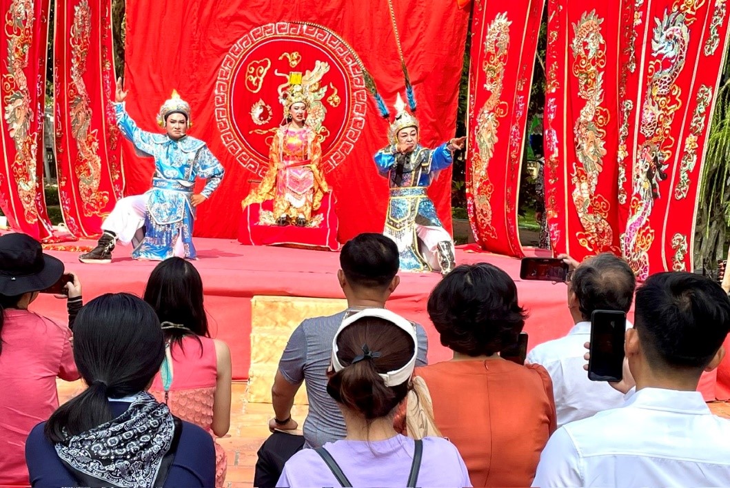 Đoàn Famtrip TP. Hồ Chí Minh xem hát bội tại Văn Thánh miếu Vĩnh Long.
