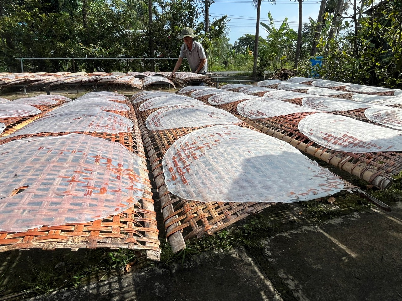 Một góc khung cảnh làng nghề bánh tráng Cù lao Mây