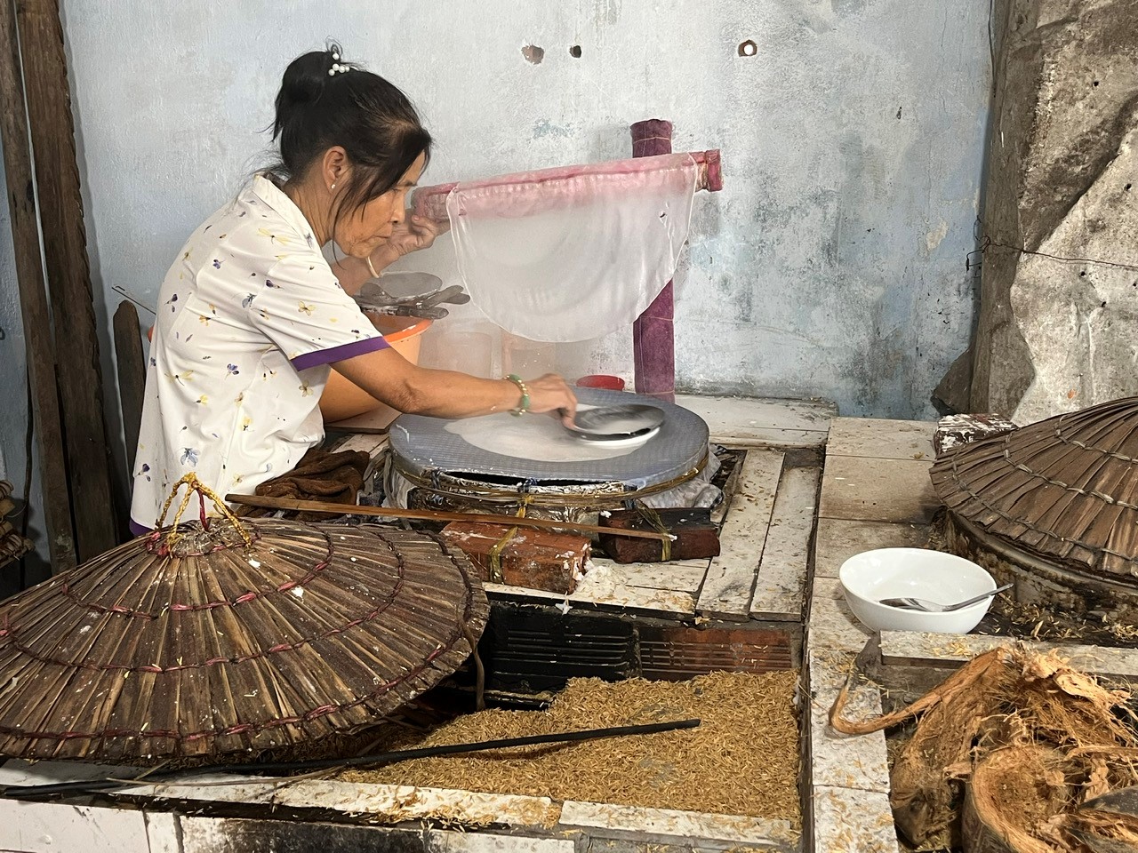 Công đoạn tráng bánh của Cô Thúy Liễu