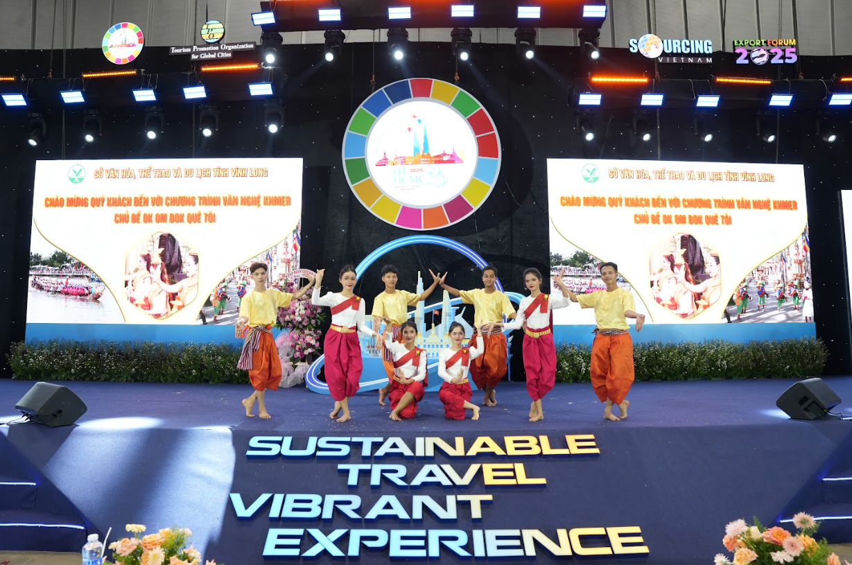 Tham gia hội chợ lần này cũng là dịp để tỉnh Vĩnh Long mang đến chương trình biểu diễn Nghệ thuật Khmer với chủ đề “Ok Om Bok quê tôi”, nhằm quảng bá hình ảnh văn hóa - du lịch của tỉnh nhà với du khách trong và ngoài nước, giữ gìn, phát huy nghệ thuật múa Khmer và góp phần bảo tồn bản sắc văn hóa của dân tộc. Các tiết mục văn nghệ Khmer bao gồm: Múa dân gian Khmer "Moha Om Bok - Lúa mới làm cốm dẹp", hoạt cảnh Lễ cúng trăng, ca múa " Hát múa dưới Ánh trăng", ca múa Ok Om Bok, múa dân gian Khmer "Louy Pro Teap - Hoa đăng đêm trăng". Thời gian: 10 giờ 10 phút - 11 giờ 10 phút ngày 06/9/2025. Địa điểm: tại sân khấu của sự kiện.