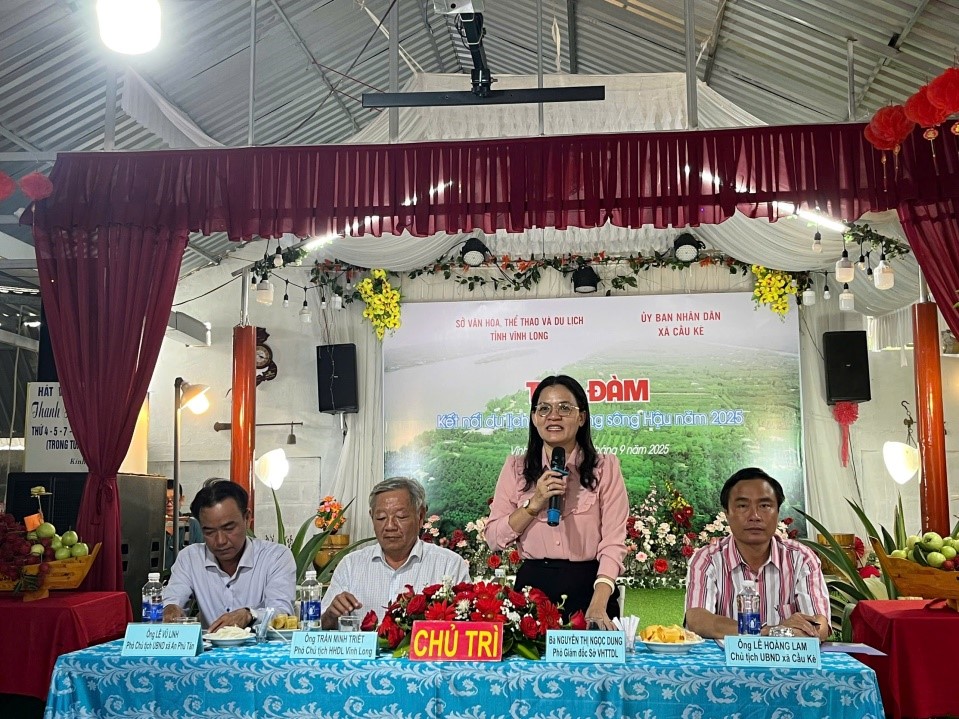 Sau chương trình khảo sát là chương trình tọa đàm “Kết nối du lịch phía Đông sông Hậu năm 2025” nhằm trao đổi, chia sẻ và thống nhất những định hướng, giải pháp phát triển du lịch của tỉnh nói chung và của khu vực các xã Cầu Kè, An Phúc Tân, Tam Ngãi nói riêng; đề xuất giải pháp phát triển, khai thác sản phẩm du lịch văn hóa, di tích, sinh thái,... được tổ chức tại Thanh Trà Quán (xã An Phú Tân). Chủ trì buổi toạ đàm là Bà Nguyễn Thị Ngọc Dung - Phó Giám đốc Sở Văn hóa, Thể thao và Du lịch tỉnh Vĩnh Long, Ông Nguyễn Thanh Vũ - Phó Chủ tịch UBND xã Tam Ngãi, Ông Lê Hoàng Lam - Phó Chủ tịch UBND xã Cầu Kè.