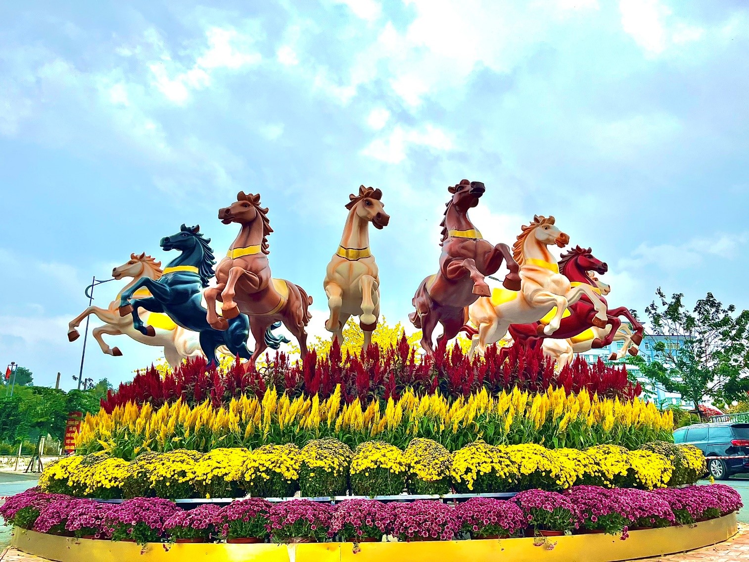 Và sẽ là một sự thiếu sót nếu du xuân mà không “check-in” linh vật của năm – đó chính là linh vật ngựa tại con đường Gốm và hoa (đường nối đường Phạm Hùng và đường Võ Văn Kiệt).