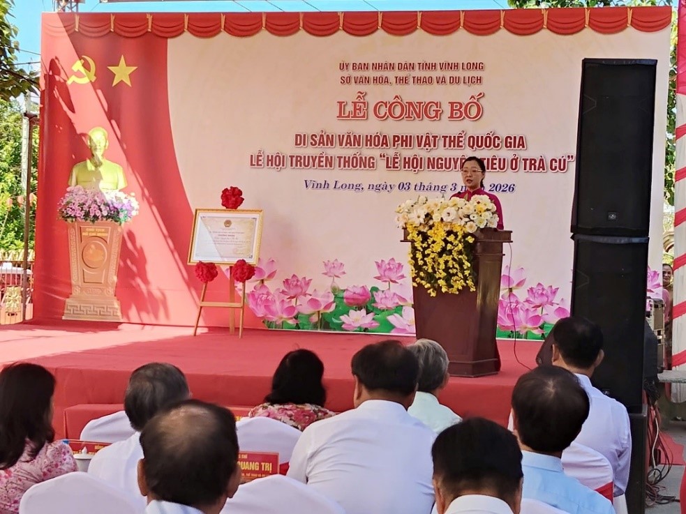 Sáng ngày 03/3/2026, tại Phước Thắng Cung - chùa Ông Bảo (xã Đại An), Sở Văn hóa, Thể thao và Du lịch tỉnh Vĩnh Long tổ chức Lễ công bố di sản văn hóa phi vật thể quốc gia Lễ hội truyền thống “Lễ hội Nguyên tiêu ở Trà Cú”. Đây là sự kiện nằm trong chuỗi hoạt động của Tuần lễ Văn hóa, Thể thao và Du lịch xã Đại An năm 2026.