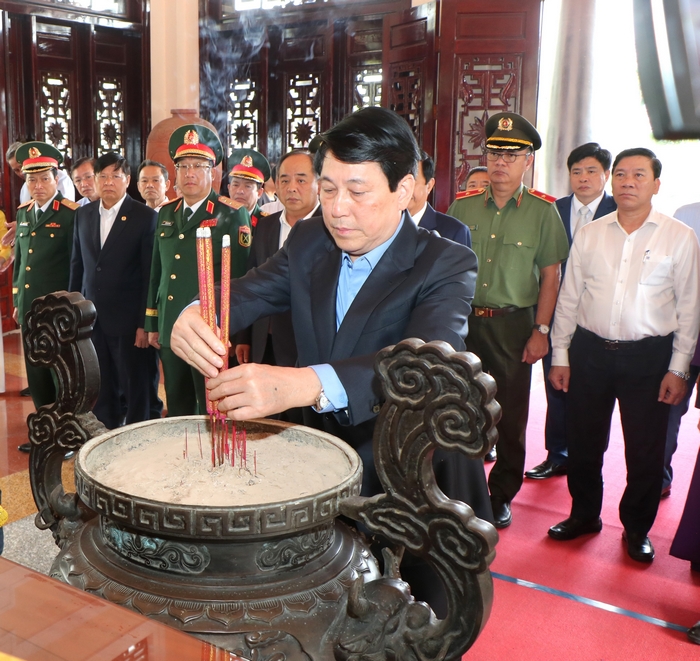 Chủ tịch nước Lương Cường viếng Khu lưu niệm Chủ tịch HĐBT Phạm Hùng. |