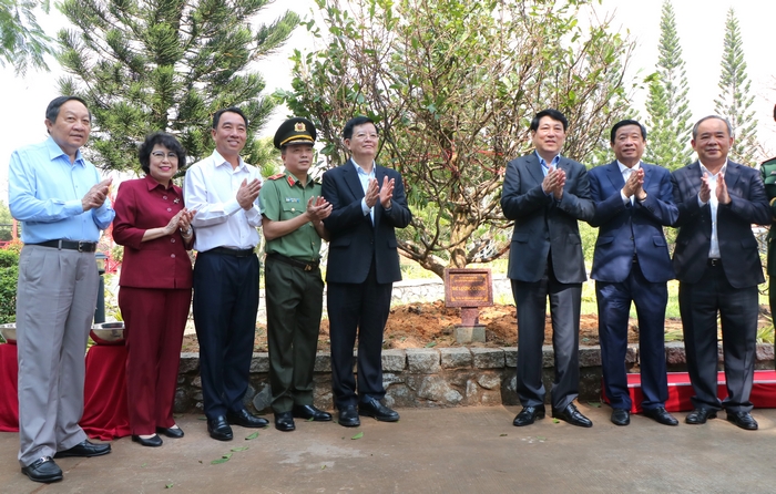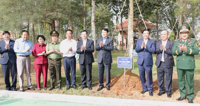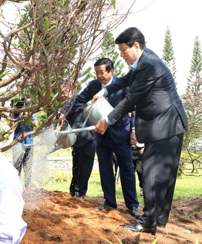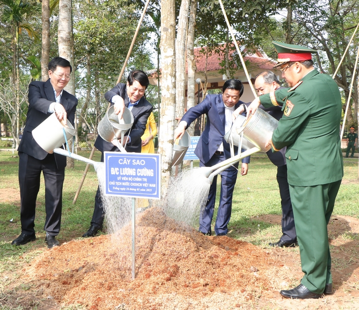 Chủ tịch nước Lương Cường trồng cây trong khuôn viên Khu lưu niệm Chủ tịch HĐBT Phạm Hùng.