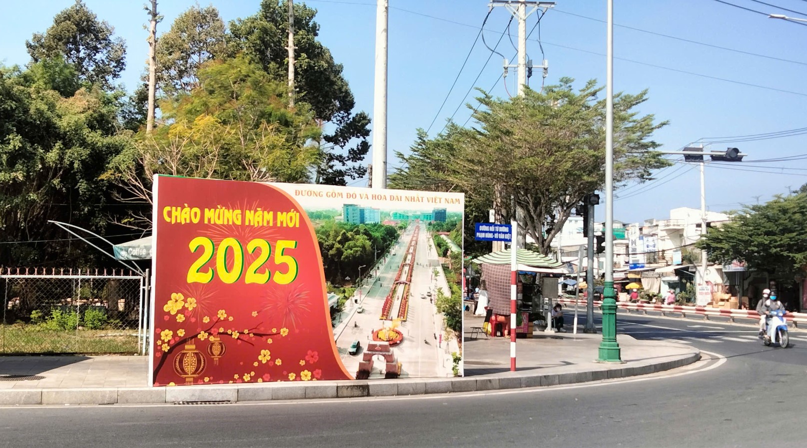 Trên tuyến đường vào “Đường Gốm đỏ và hoa” cũng đã bố trí pano có kích thước lớn để chào mừng Xuân năm 2025, tạo nên một diện mạo mới và rực rỡ cho thành phố.