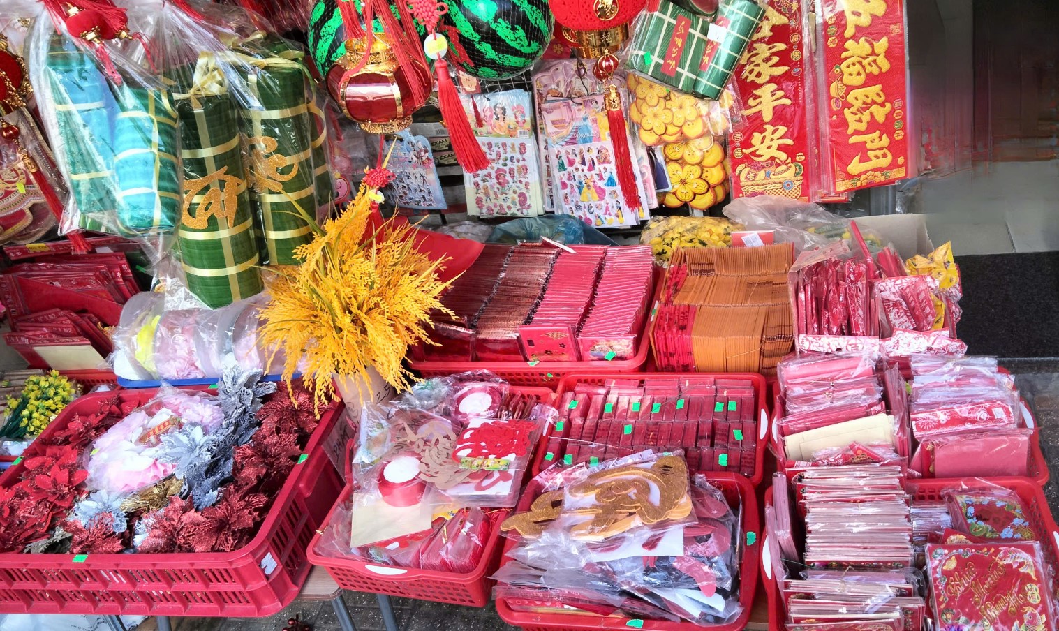 Tết không chỉ là thời khắc để mọi người sum vầy bên nhau, lan tỏa tình yêu thương mà còn là dịp để làm mới bản thân, mua sắm đồ mới, và thể hiện sự khéo léo, tỉ mỉ trong việc tô lại màu sắc xuân cho căn nhà của mình, đây còn được xem như là một hoạt động truyền thống mỗi dịp Tết. Tại các sạp và cửa hàng ở chợ Vĩnh Long, không khỏi choáng ngợp trước sự đa dạng, nhiều màu sắc của các sản phẩm phục vụ Tết: lồng đèn, bao lì xì, câu đối đỏ, tranh treo Tết, đèn trang trí, các loại dây may mắn, mâm ngũ quả,… khách hàng cũng đẩy mạnh chi tiêu mua sắm khiến các tiểu thương rất phấn khởi.